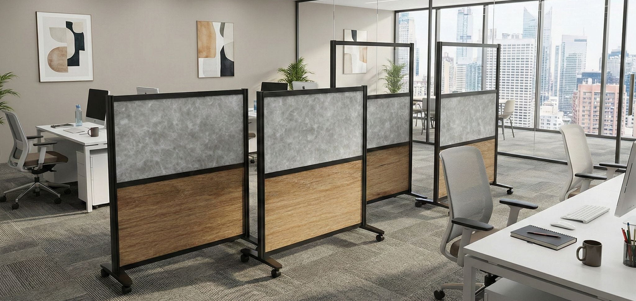 MIX Screens offer space division within workstations, or are ideal to create light-scale moveable